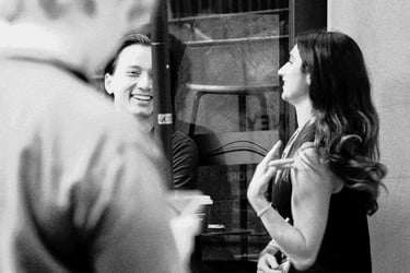 Layering in photography means creating a frame with multiple (usually two or three) subjects at different distances from the lens. For example, looking at Fig. 1 below, the first layer is the man in the foreground, while the second layer consists of the man and woman in the background. In Fig. 2, it can be said that there are three or even four layers: foreground, midground, and background left.