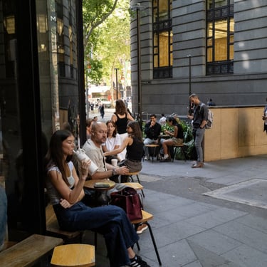 I have been trying to develop layering skills in Sydney, and opportunities are just about all based on several people walking along the street, two people chatting while others move behind them, or people waiting for their takeaway coffees outside a coffee shop. I'm not saying there's no chance to create a photo with layers, but that the richness of developing countries is not available.