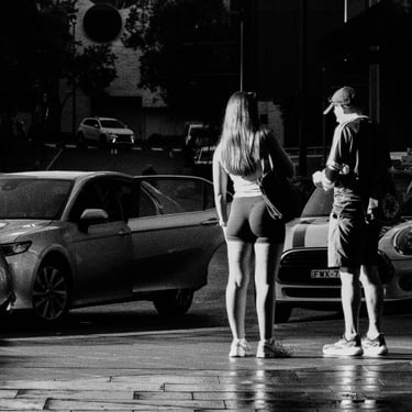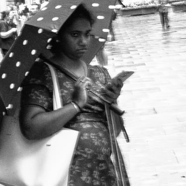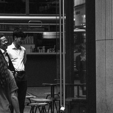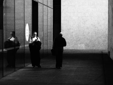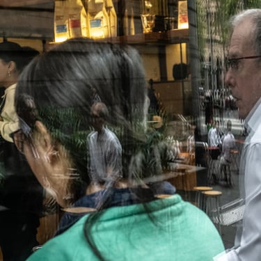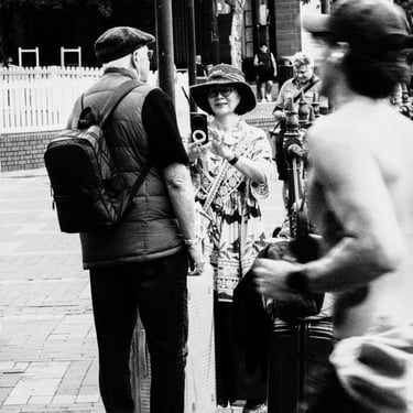 I’m not prescriptive about camera settings or about street photography. I’ve discussed elsewhere what my definition of this genre is, and I’ve provided a brief overview of the exposure triangle. I use manual settings myself, other than focus, which I set to auto. When I am stationary for a period of time, for example, setting up a more complex photograph using layers, I set focus manually. Then I set the aperture to about f8 / f11 to enable a focus zone with a deep depth of field.