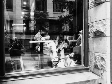 Jonathan Jasberg's primary point in his list of photographic elements is the need for what he calls "supporting characters". These are people who assist the main character in creating a complex street photograph. A quote from ChatGPT is: "A street scene that feels 'alive' often has multiple people interacting in different ways. Supporting characters make a street photograph feel more authentic, as they reflect the true bustle and diversity of urban life".