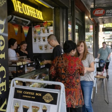 I have been trying to develop layering skills in Sydney, and opportunities are just about all based on several people walking along the street, two people chatting while others move behind them, or people waiting for their takeaway coffees outside a coffee shop. I'm not saying there's no chance to create a photo with layers, but that the richness of developing countries is not available.